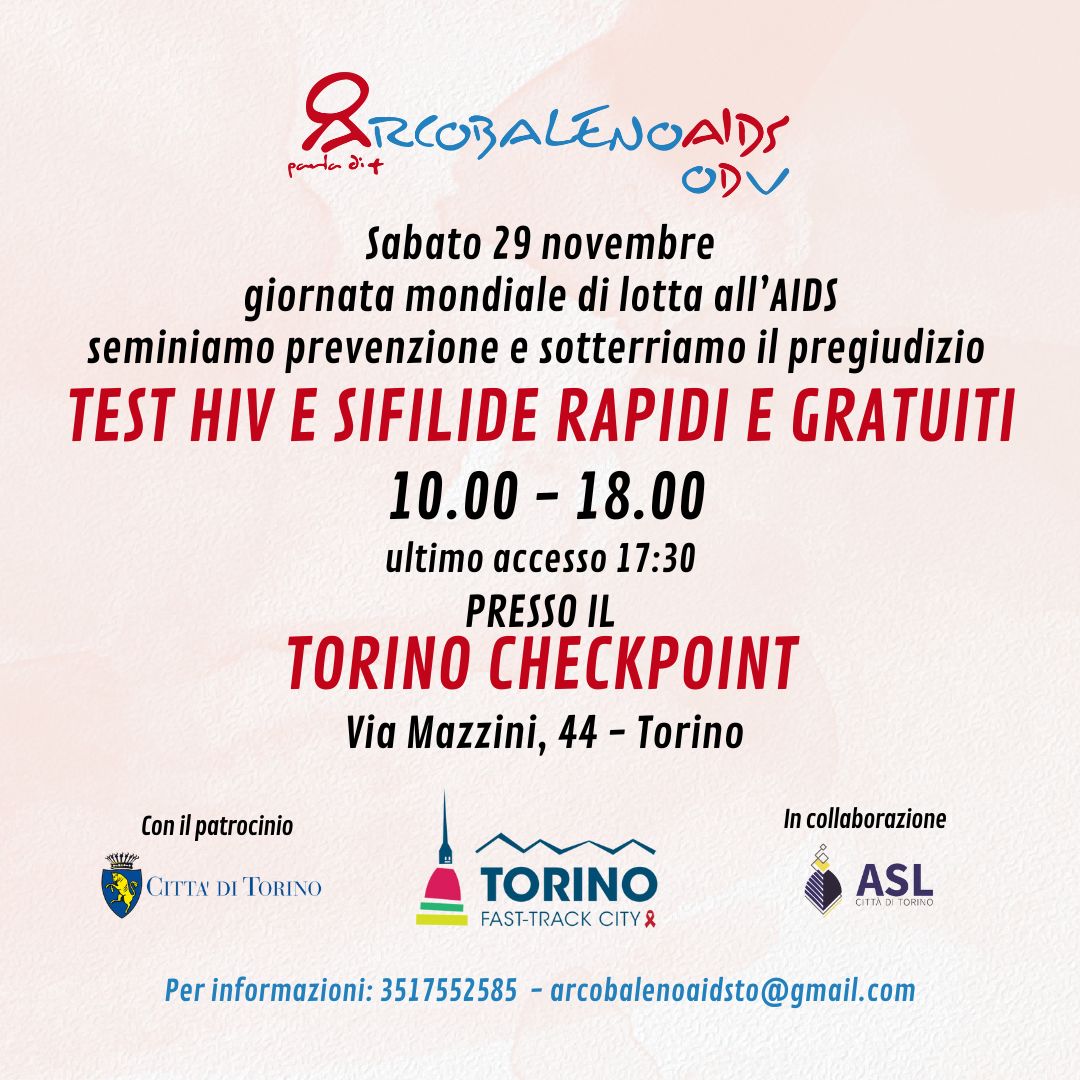 TEST HIV E SIFILIDE AL TORINO CHECKPOINT 30 NOVEMBRE